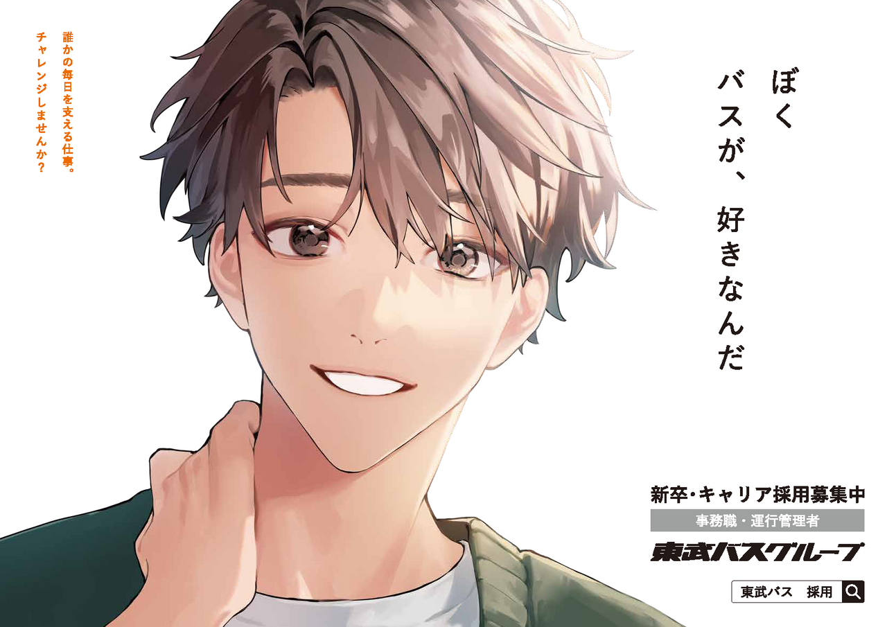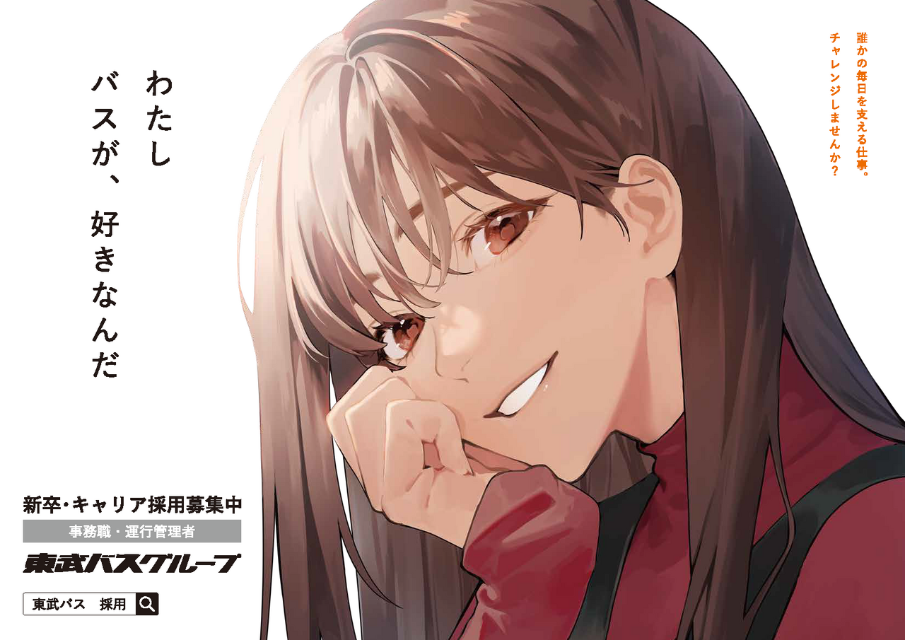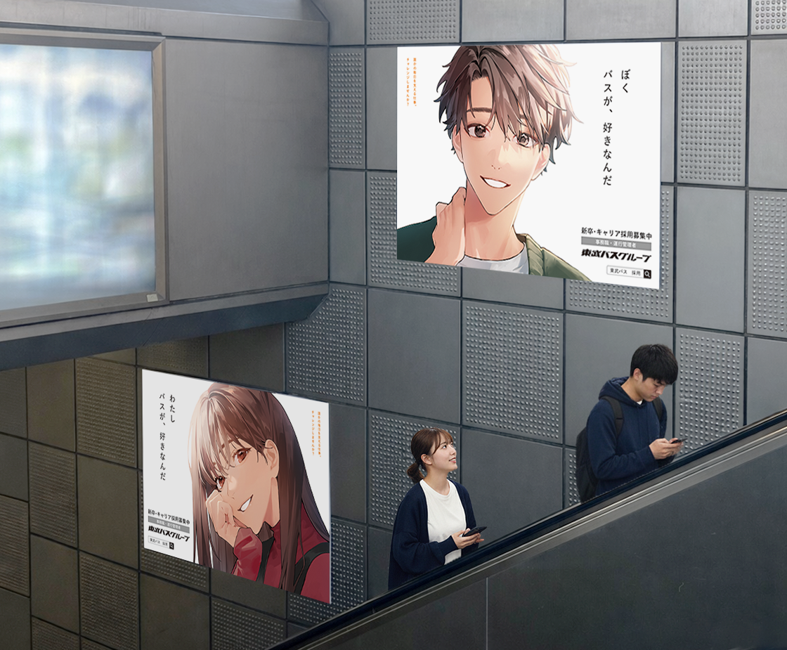 東武鉄道5駅の特別枠(エスカレーター横)に掲載する東武バスグループのリクルート広告ポスター。